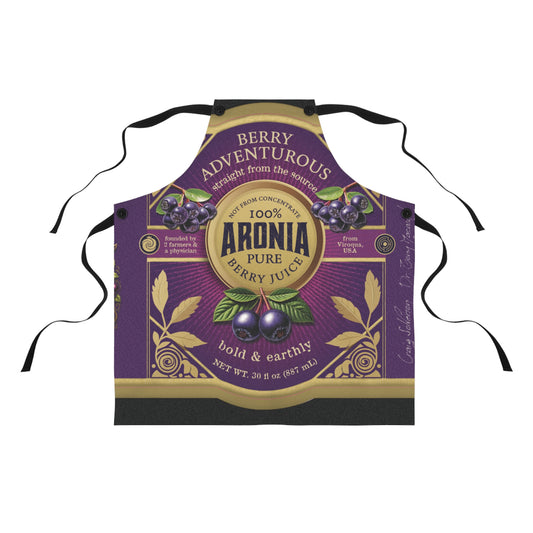 Aronia Berry Vintage Label Apron — Retro Purple Fruit Jam & Juice Kitchen Apron