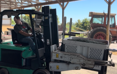 At harvest, we use specialized equipment and our own commercial-grade cleaning line to thoroughly wash and prepare the berries. Once cleaned, the berries are placed into bins and frozen to preserve quality and enhance flavor.